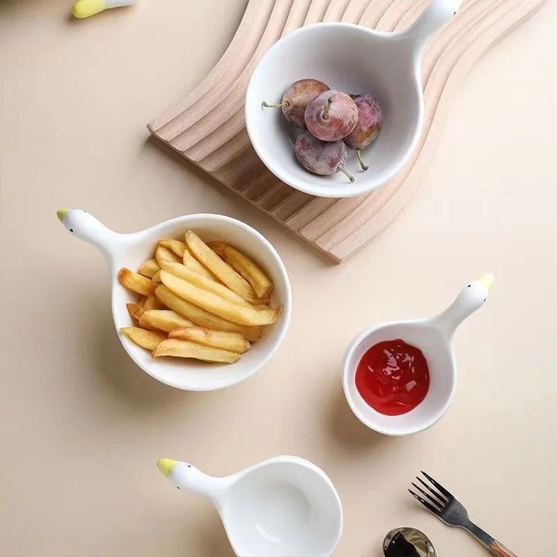 Nome do produto: bacias pequenas do iogurte do prato do molho da bacia do petisco para o branco das crianças para o molho de mergulho prato bonito cerâmico do tempero da bacia do pato
